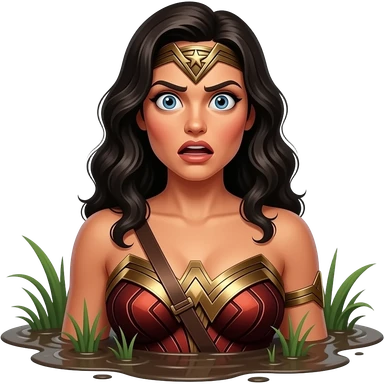 a tanned shocked terrified voluptuous wonder woman chest deep in jungle quicksand emoji