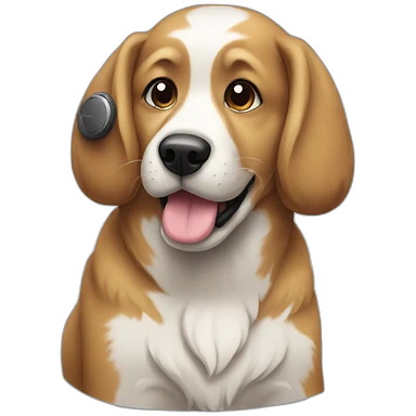 Need stickers with a mini bull terrier that is all white but has a brown spot around its right eye that goes a little towards the top of its head but not towards its ear. It is a girl dog so it needs to be cute on some stickers, like with a pink bow on its head. Need a sticker of it eating a chocolate bar. Of it eating crackers. Of it taking up the whole couch. Of it lying under the computer desk. emoji