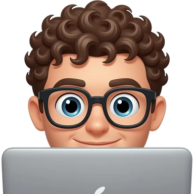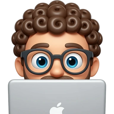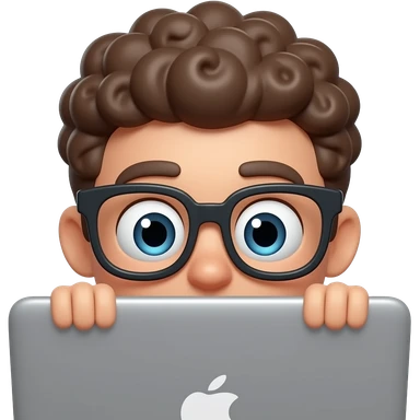 3D emoji-style male character with curly hair and big glasses, eyes wide, peeking over a laptop, minimal design, soft lighting, plain background, high quality. emoji