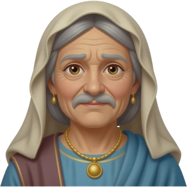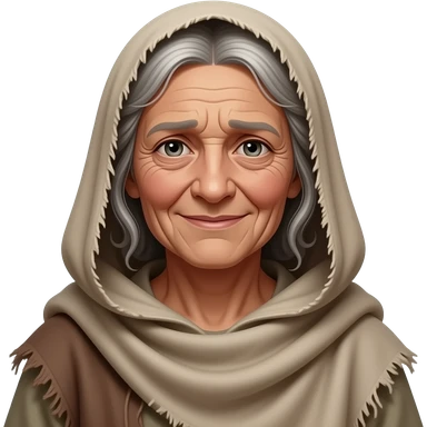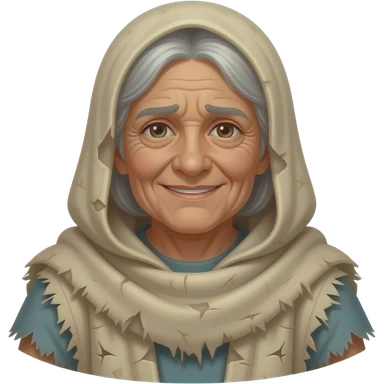 A poor old woman with a weary smile, wearing old tattered draped clothing from biblical times emoji