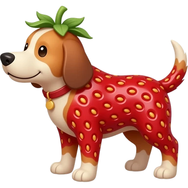 dog shaped like a strawberry, glossy, 3D render, white background emoji