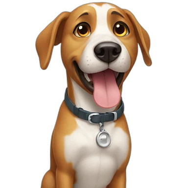 Dog with a name tag that says benson. Big brown nose, white face medium length hair, chocolate brown ears and long eye lashes emoji