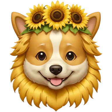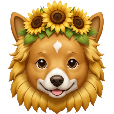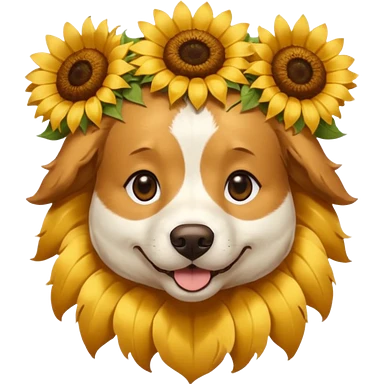 dog sitting with sunflower crown emoji | AI Emoji Generator