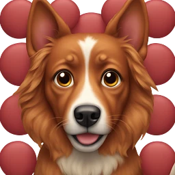 Dog squeezing a red heart emoji | AI Emoji Generator