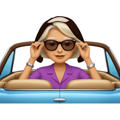 Stikers of mom which is a bit old and is relax and I will put her in a car emoji