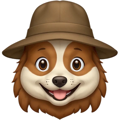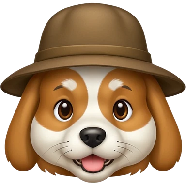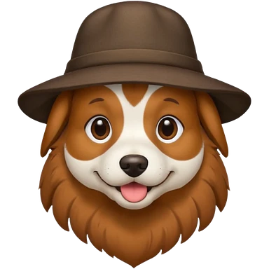 A St. Bernard dog  wearing a hat, but the hat is poop.  emoji