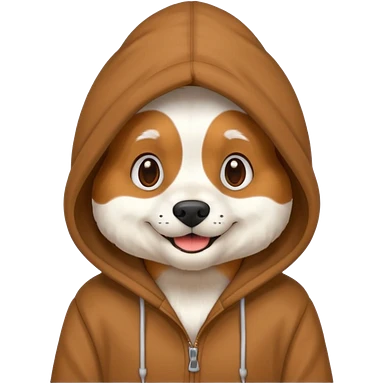 Dog wearing a hoodie and sunglasses with a cat emoji