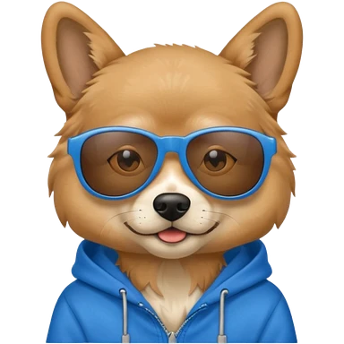Dog wearing a hoodie and sunglasses emoji | AI Emoji Generator