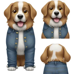Dog standing up with a blueish tank-top and blue baggy jeans emoji