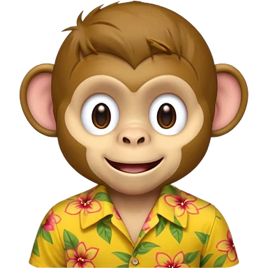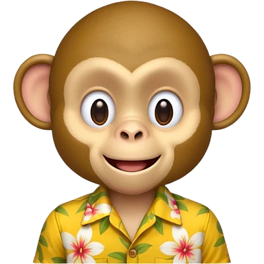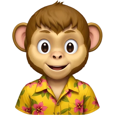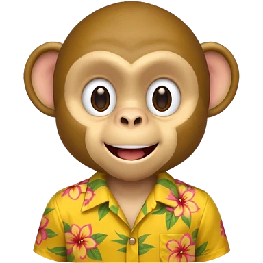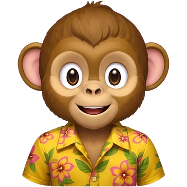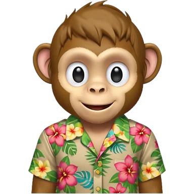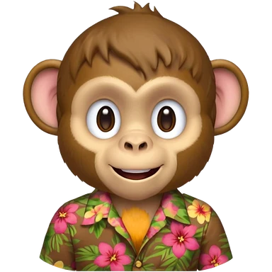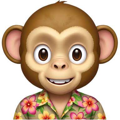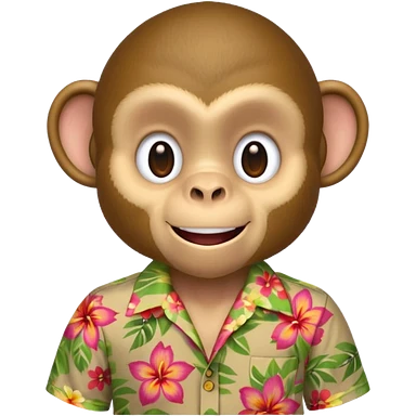 Monkey – cheeky grin, wearing floral aloha shirt. emoji