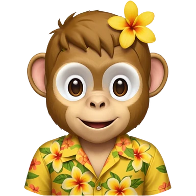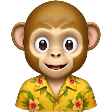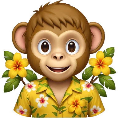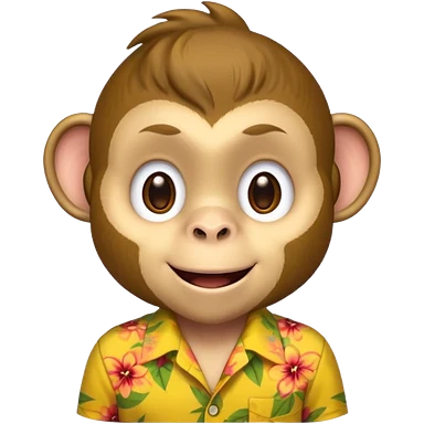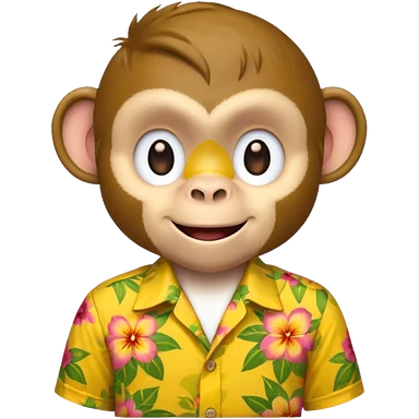 Monkey – cheeky grin, wearing yellow floral aloha shirt. emoji