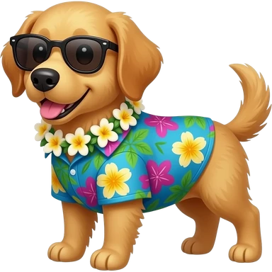 Goldern Dog – wearing colorful aloha shirt and sunglass emoji
