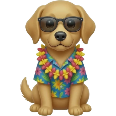 Goldern Dog – wearing colorful aloha shirt and sunglass front facing emoji