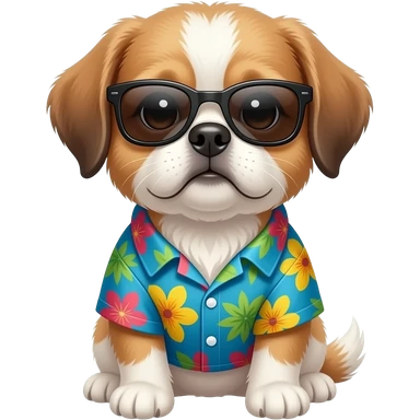 shitzu Dog – wearing colorful aloha shirt and sunglass front facing emoji