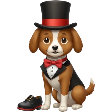 A dog wearing shoes and a top hat emoji