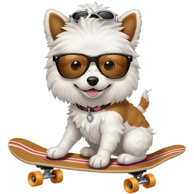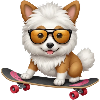 Dog White fluffy skate board sunglasses emoji | AI Emoji Generator
