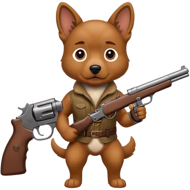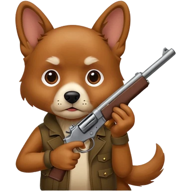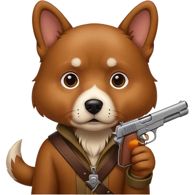 Dog with a red bandana and sharp teeth with a paintball gun emoji