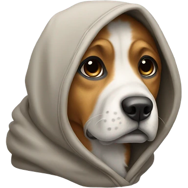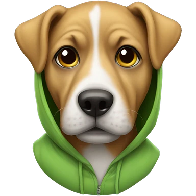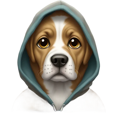 Dog with a hoodie and black sunglasses with a Glock emoji
