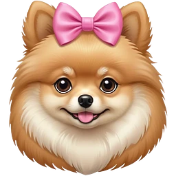Dog with a pink bow on its head sitting by a Christmas tree  emoji