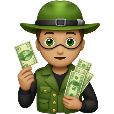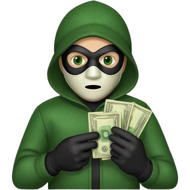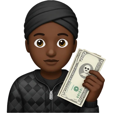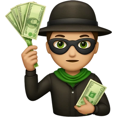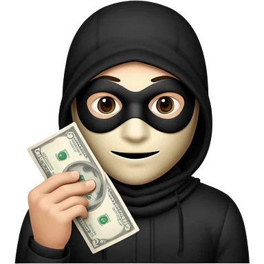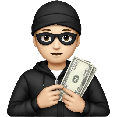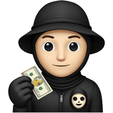 Make a robber emoji holding a bank cash with black white pattern emoji