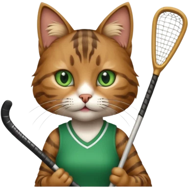 A field hockey stick and ball on a vibrant green grass field, with goalposts and clear field markings in the background. The scene emphasizes the bright, lush grass, highlighting the fast-paced and strategic nature of hockey on a well-maintained pitch. emoji