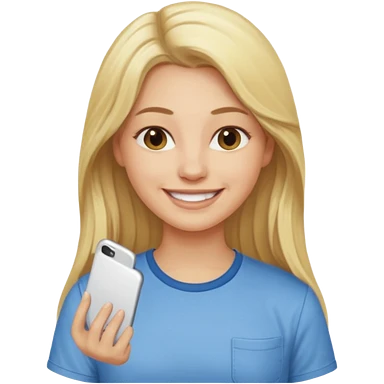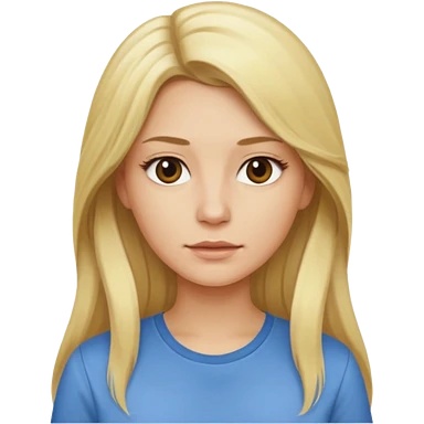 Girl with long curly blonde hair and blue eyes holding dog emoji