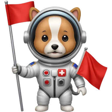 a chihuahua dog in space suit, holding blue rectangle flag, full body, front view emoji