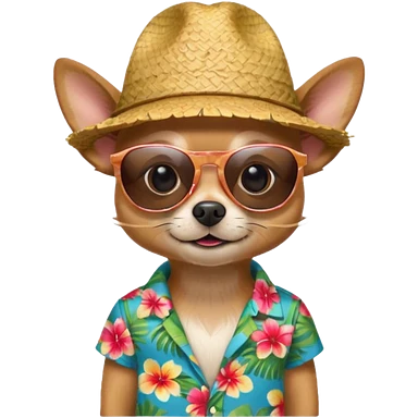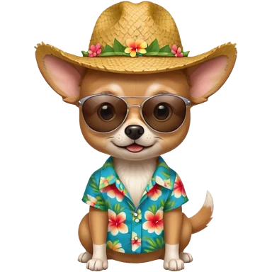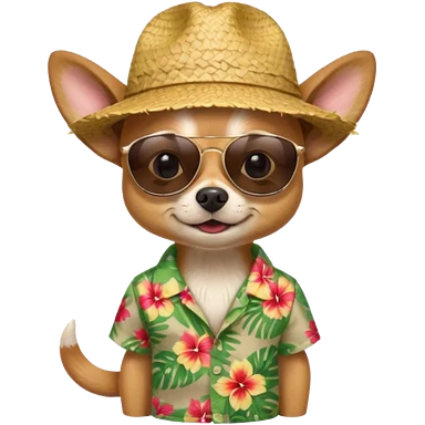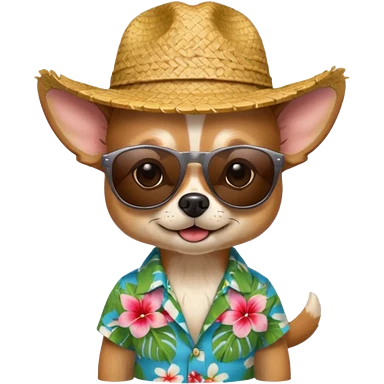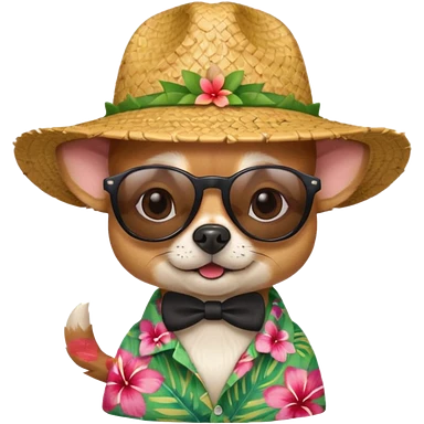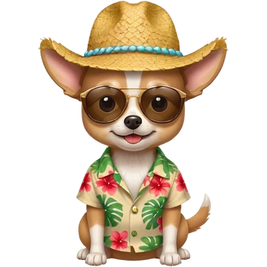 Chihuahua with sunglasses and straw hat, hawaii shirt emoji