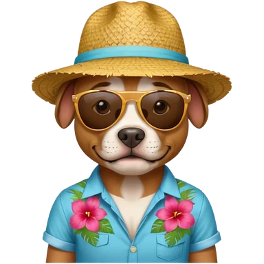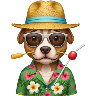 pitbull with sunglasses and straw hat, hawaii shirt emoji
