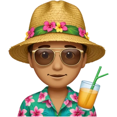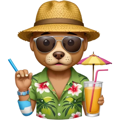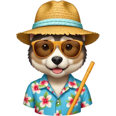 dog with sunglasses and straw hat, hawaii shirt emoji | AI Emoji Generator