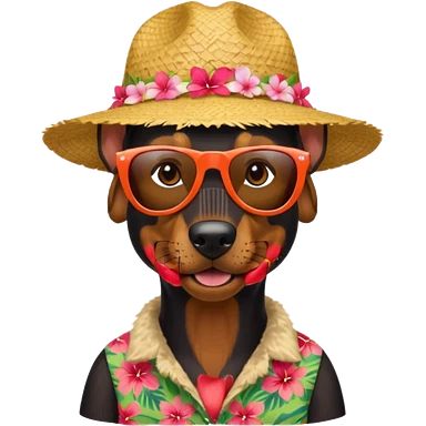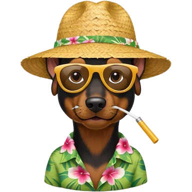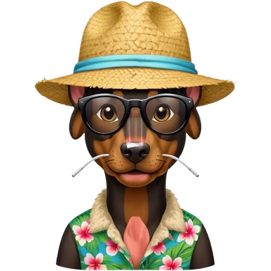 doberman with sunglasses and straw hat, hawaii shirt emoji