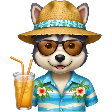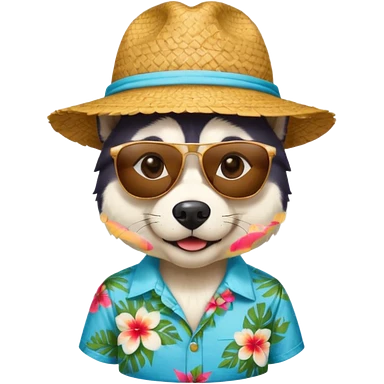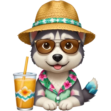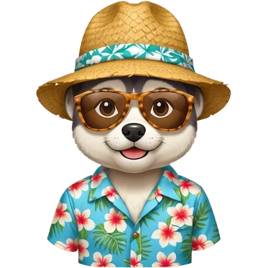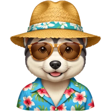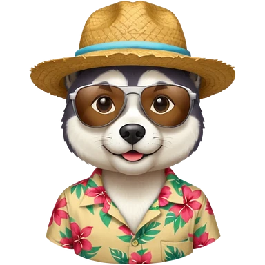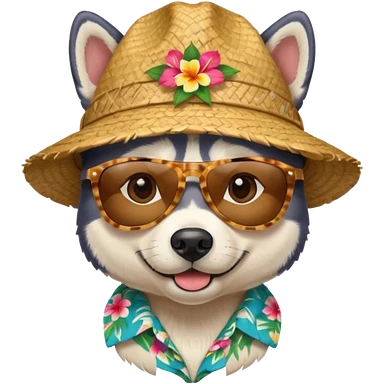 hasky with sunglasses and straw hat, hawaii shirt emoji