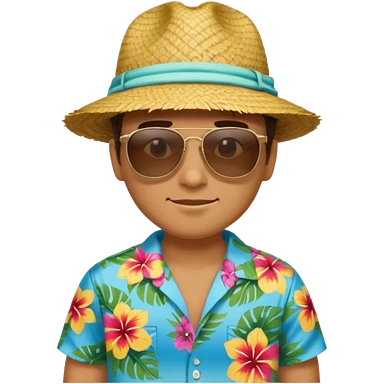 a full body view of a relaxed guy in his 40s wearing a hawaii shirt emoji