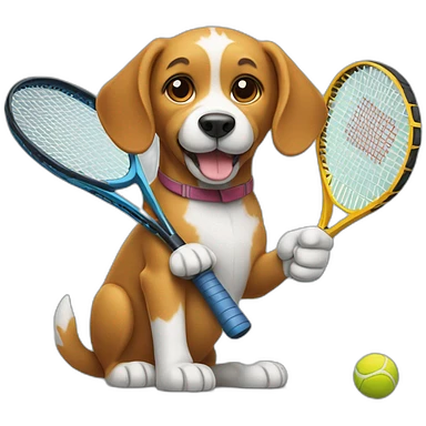 Dog playing with tennis ball as an Olympic event with Olympic rings emoji