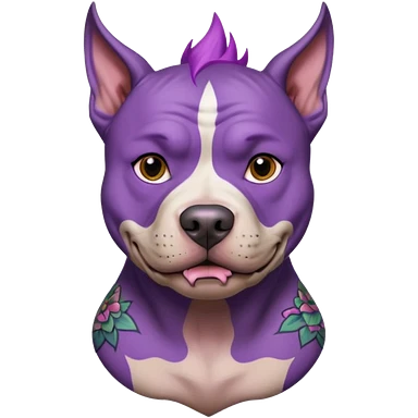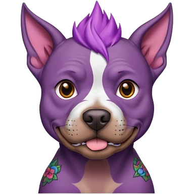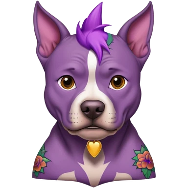 very tattoed brown face pitbull dog with purple spiky hair emoji