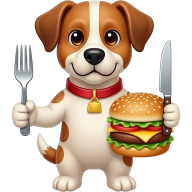 Dog with Fork, knife, and a Burger emoji