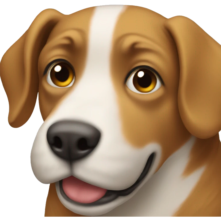 A cute, slightly 3D emoji-style digital illustration of a Blue Heeler (Australian Cattle Dog) from the neck up, with a focus on its face and upper neck. The dog has a black and gray speckled coat with short, dense fur. It has large, pointed ears that stand upright, with the inner part of the ears being a soft pinkish hue. The face is expressive, with warm brown eyes—one eye slightly lazy—giving it a friendly and curious look. The dog’s snout is medium-sized, with a black nose and subtle whisker markings. The expression is neutral but slightly inquisitive. The fur texture should be smooth and well-blended to maintain a polished emoji-style appearance. The illustration should have smooth shading, a rounded, polished look, and a slightly three-dimensional feel. No black spots on the fur. No background. emoji