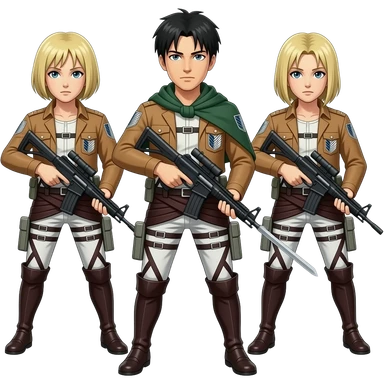 Doing the pose of the soldiers in attack on titan, when they dedicated they're hearts emoji | AI Emoji Generator