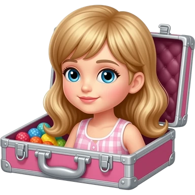 Doll with dark blonde skin with long brown hair with pink bows, lashes, cute lips emoji