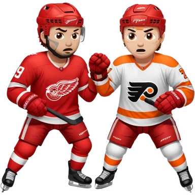One detroit red wing player fighting one Philadelphia flyers emoji