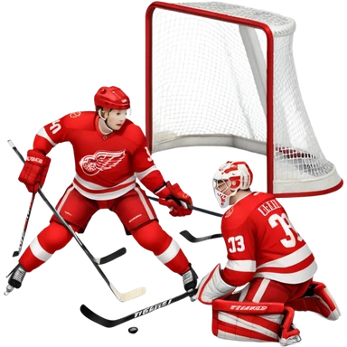 Detroit red wings shooting puck on flyers goal and goalie emoji