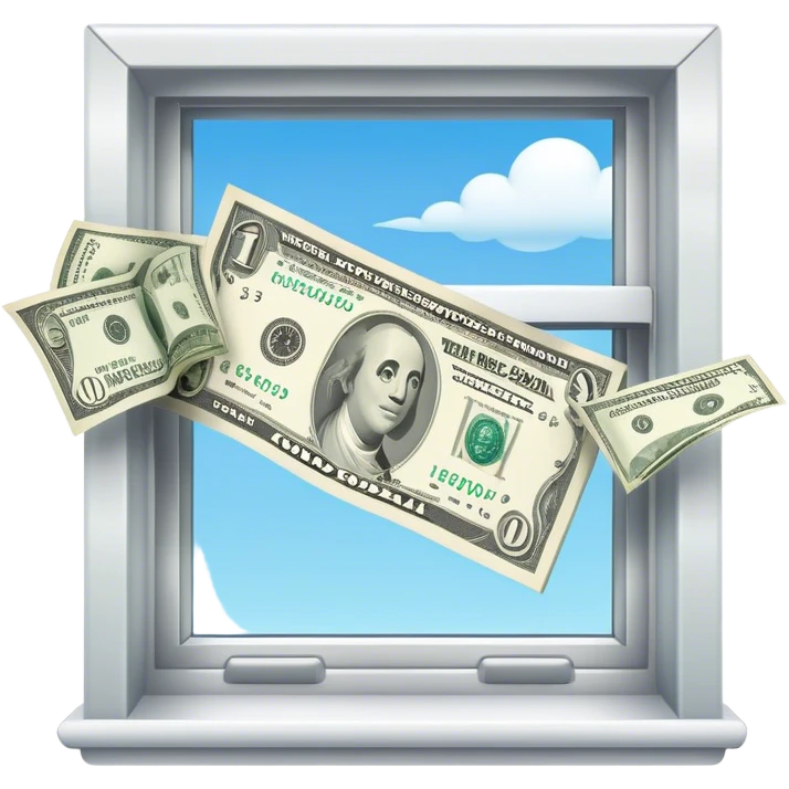 flying dollar banknote with a sad smiley face, dynamic, expressive style similar to 💸 emoji emoji