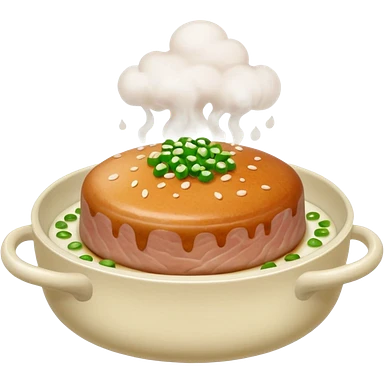 Emoji of a Chinese steamed pork patty in a small dish, topped with chopped scallions and steam rising, soft texture, minimal style. emoji
