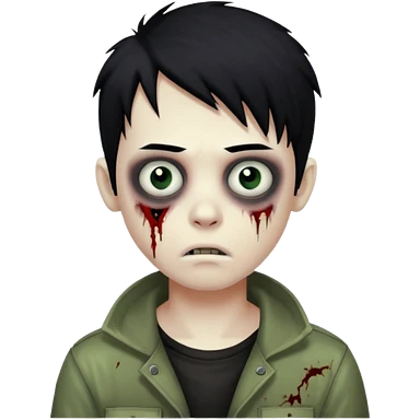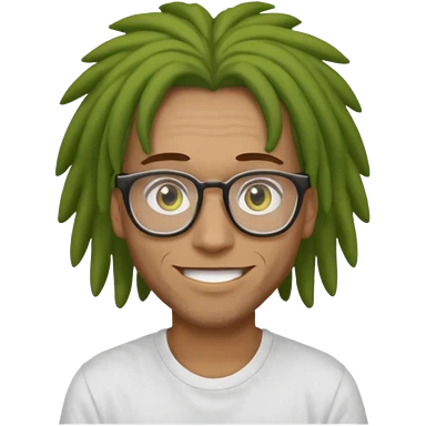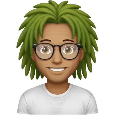 man with brown dreads white tee golden eyes light green skin glasses and white smile emoji