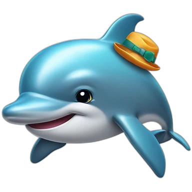Dolphin with pink cowboy hat and super happy face, with a horse tail emoji
