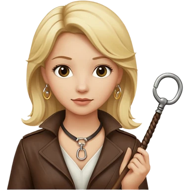 Dominatrix with blonde hair, key necklace, and a whip emoji