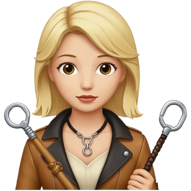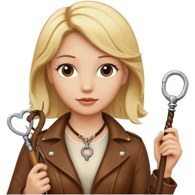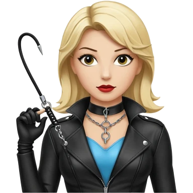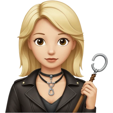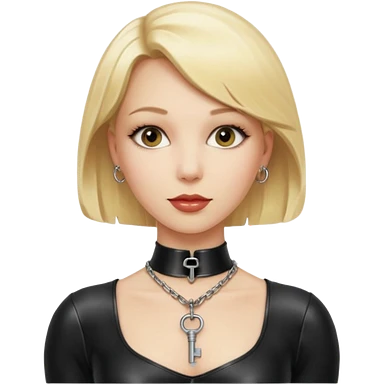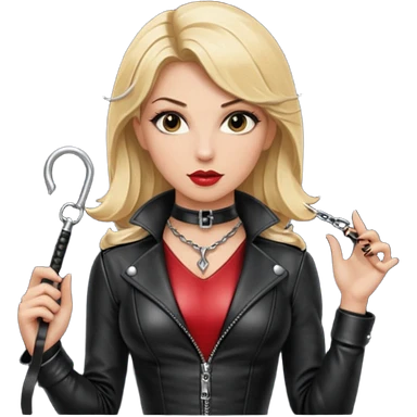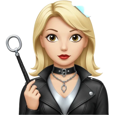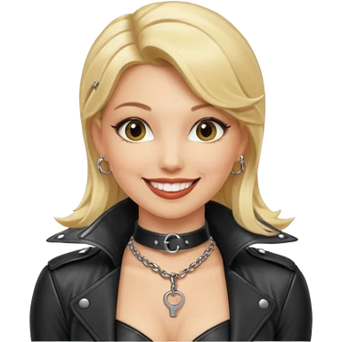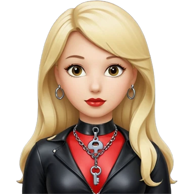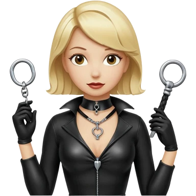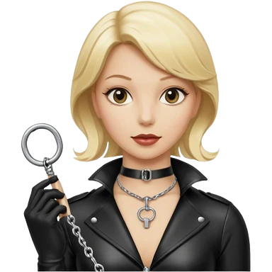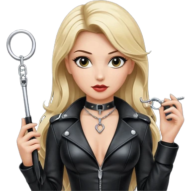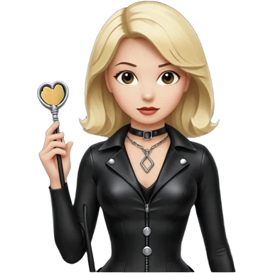Dominatrix with blonde hair, leather outfit, keychain necklace emoji