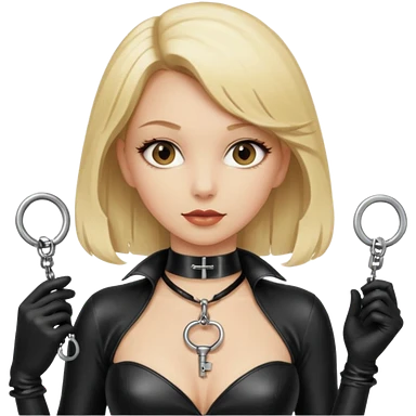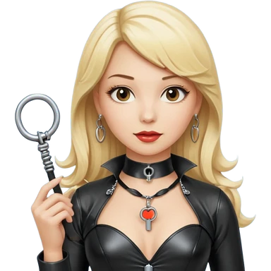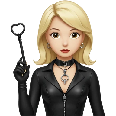 Dominatrix with blonde hair, leather outfit, and key necklace emoji