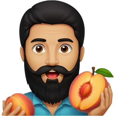 Man with beard has peach in mouth emoji