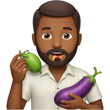 Dominican man with a beard licking eggplant emoji | AI Emoji Generator